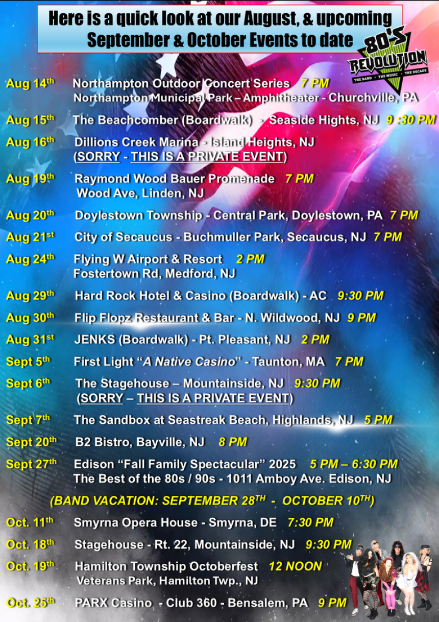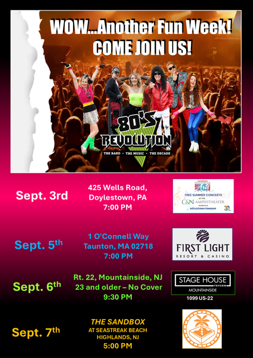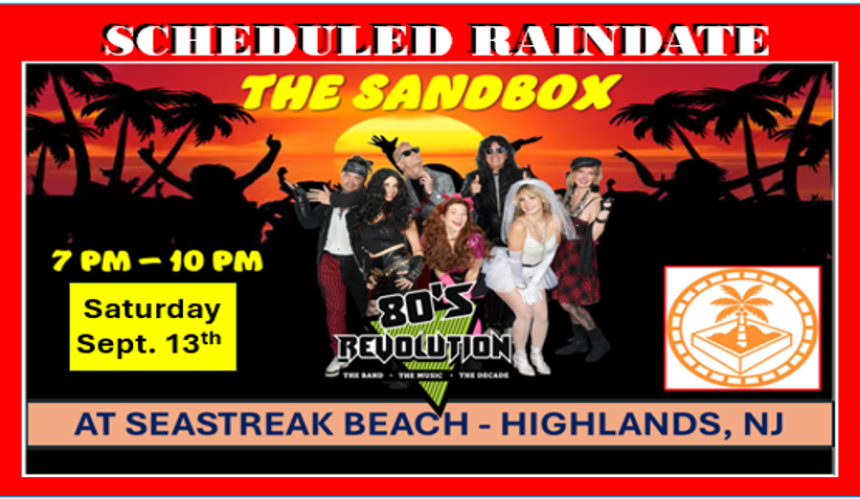 *RAINDATE FOR THE SANDBOX, HIGHLANDS, NJ IS THIS SATURDAY 9-13 9PM